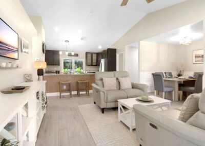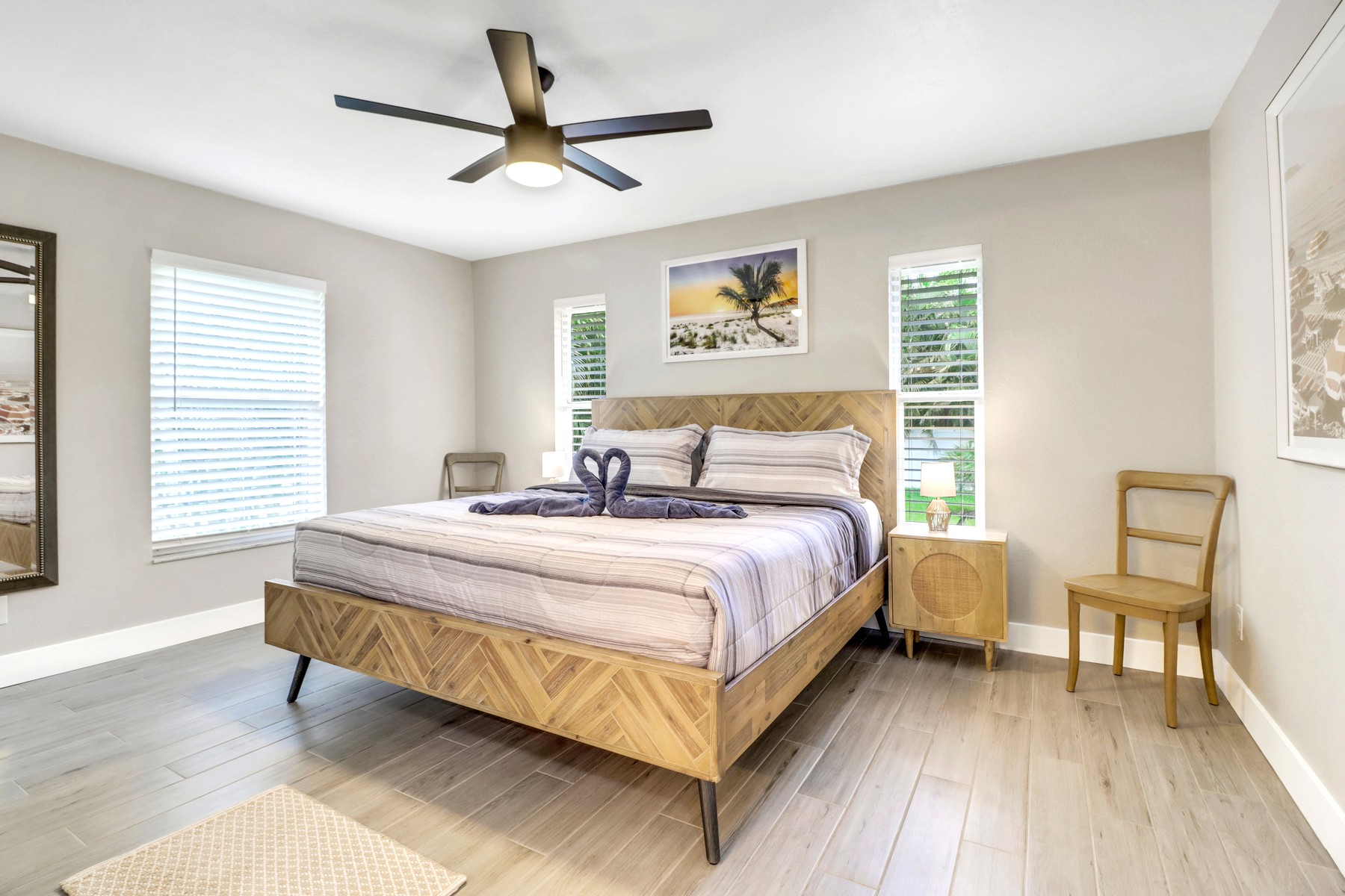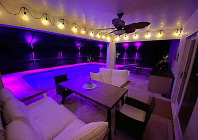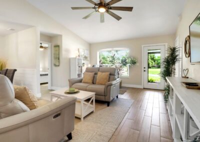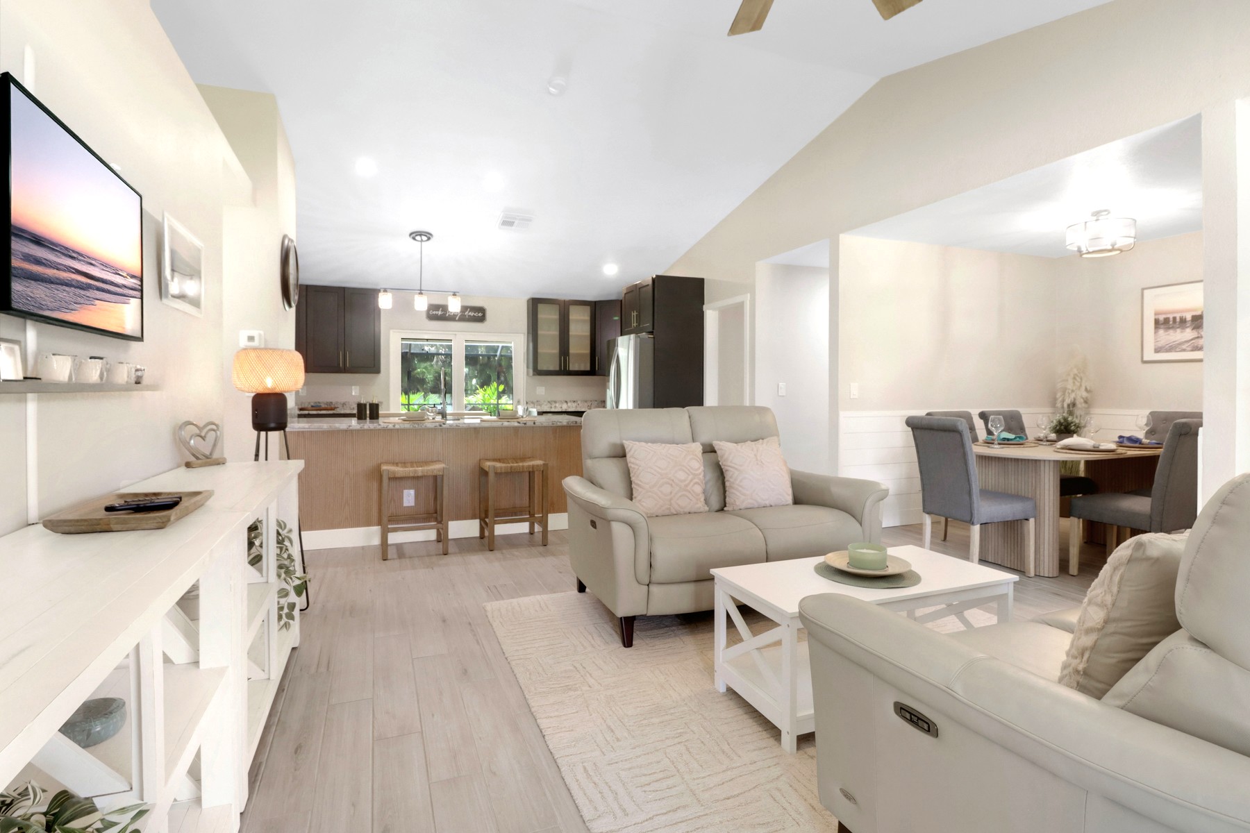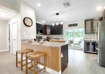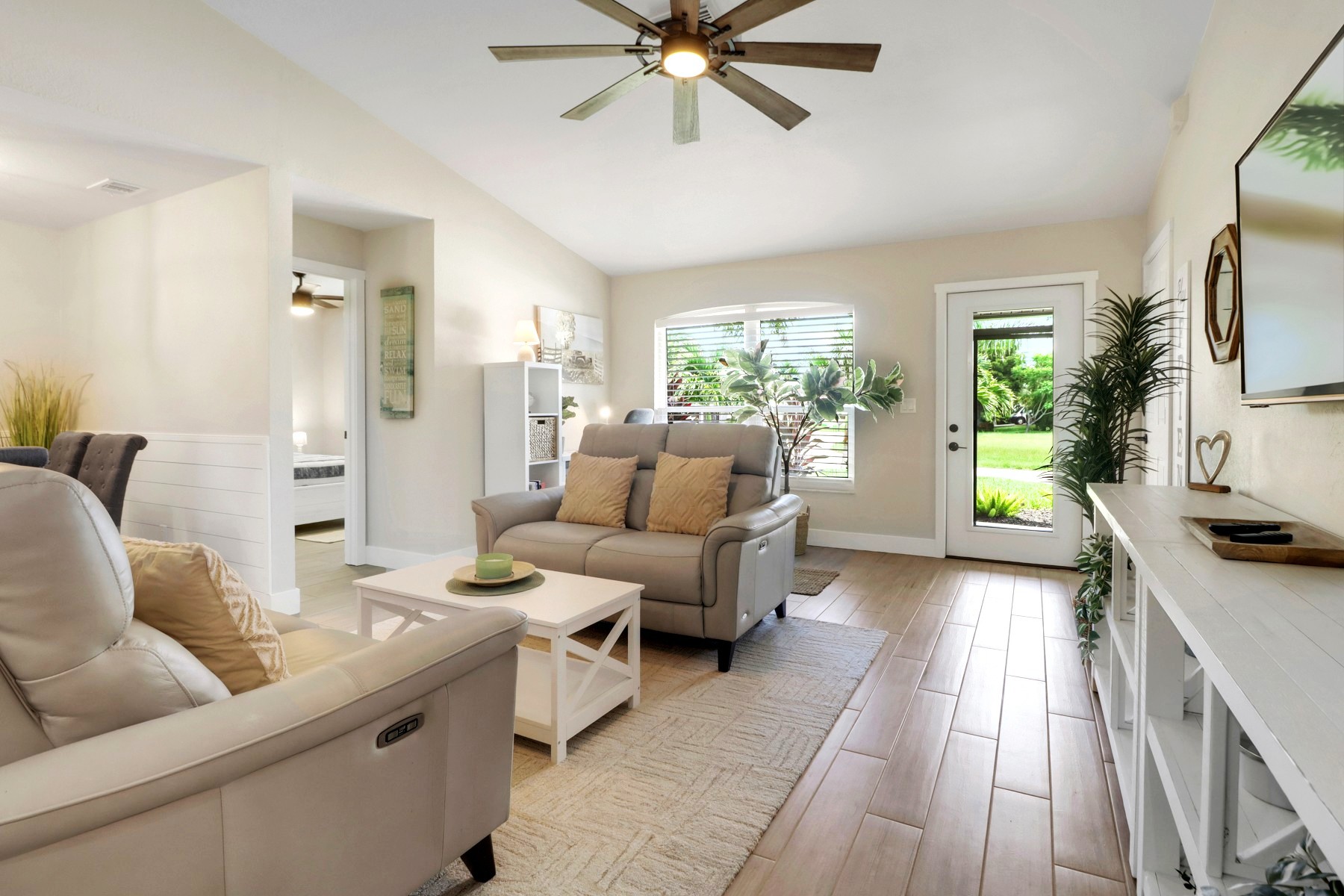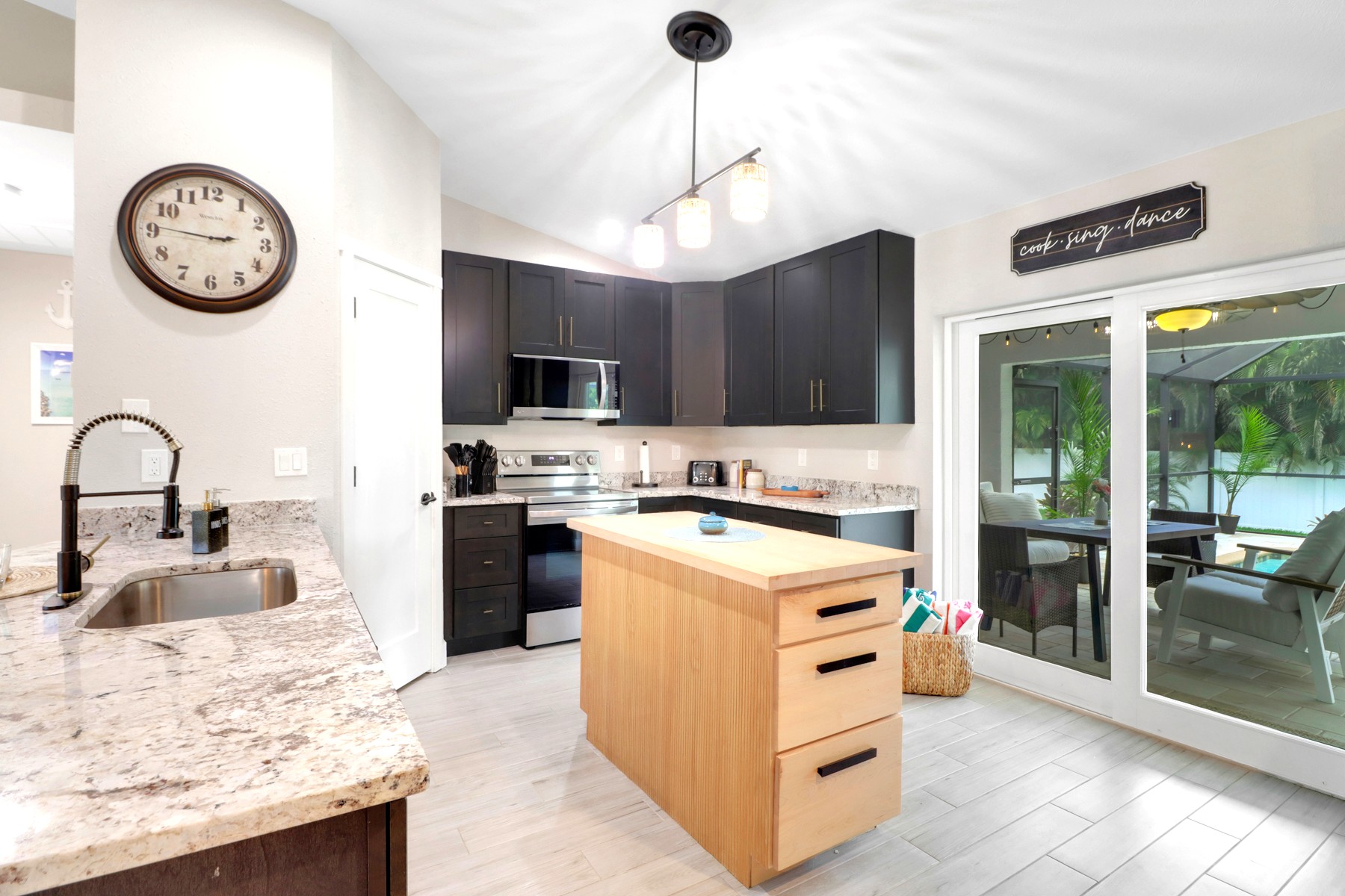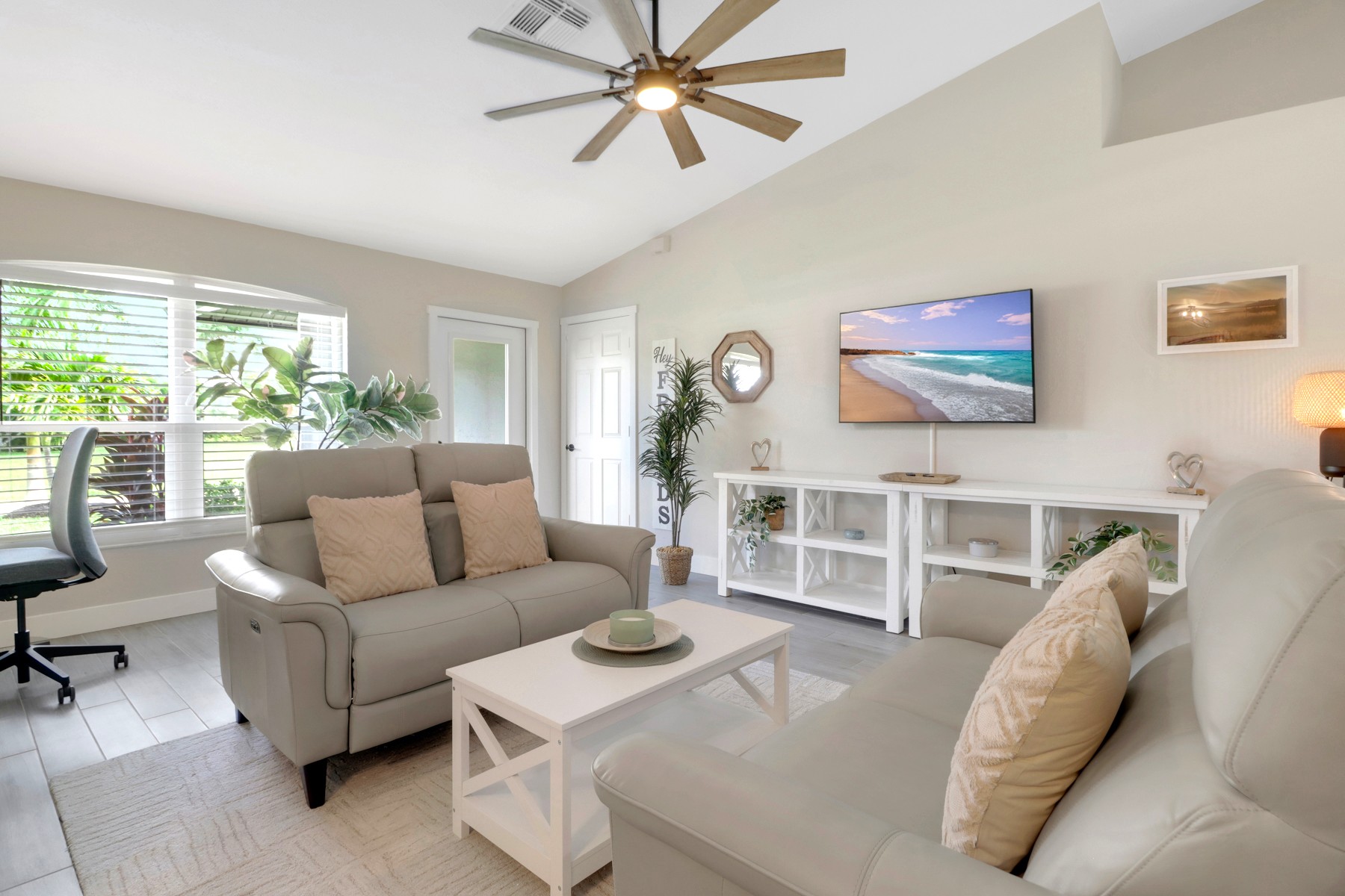 Newly furnished heated pool home in sought-after, established neighborhood minutes to shopping, dining, and Gulf-access boat ramps. Relax and unwind, and enjoy Cape Coral vacationing at its finest! Your family will be close to everything when you stay at this centrally-located place. The cozy patio area invites for relaxing times by the pool with TV and BBQ grill. You will find fishing rods and beach equipment in the garage. Oversized garden area for privacy. A portable pool fence can be installed for more safety for small children.